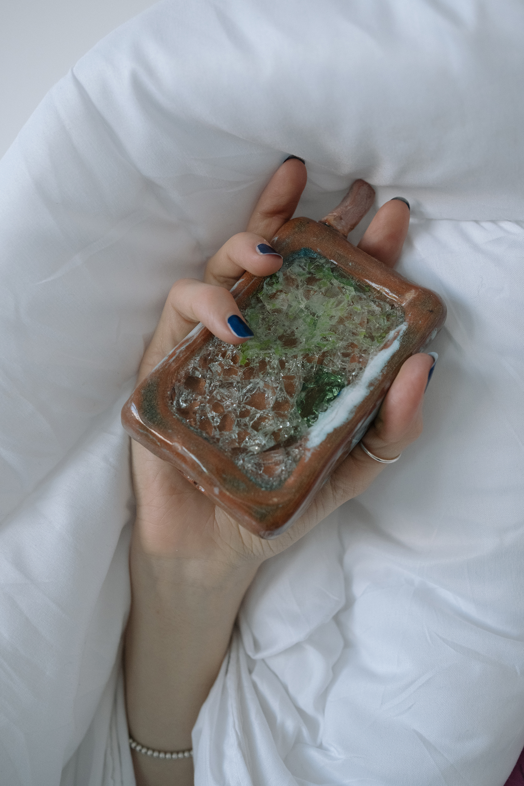 In their dysfunctional objecthood, the clay-formed Remote control plays humorously with the illusion of control you feel when you hold something tightly in your hand. A feeling that is only reminiscent in their embellished silhouettes.